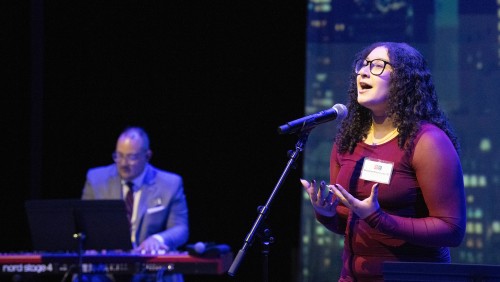 The program also featured a powerful performance of “Make Them Hear You” by Natasha Matos Luna '27 and Bobby Tomasulo, Director of Performing Arts and Musical Activities.